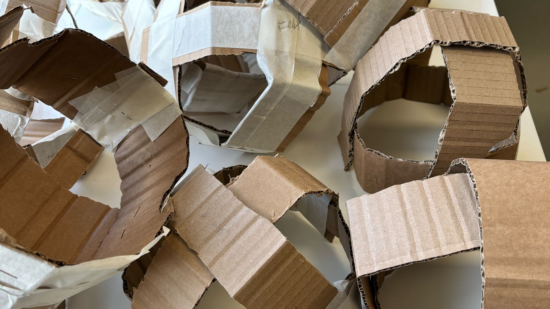 - Experimenteren met papier, karton, folie en touw en andere rycyclemateriaal om te bouwen en construeren